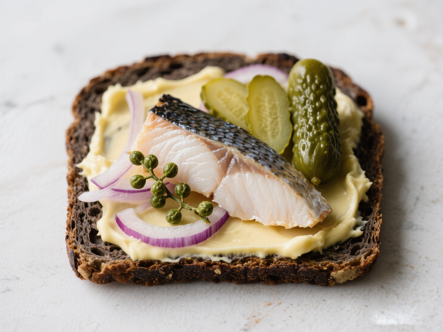 ① 準(zhǔn)備基底:將黑麥面包烤熱或直接使用,均勻涂抹一層芥末蛋黃醬或奶油奶酪。
