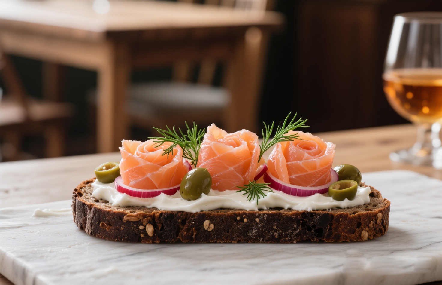 特點(diǎn):黑麥面包的質(zhì)樸谷物香與三文魚(yú)的細(xì)膩油潤(rùn)相得益彰。