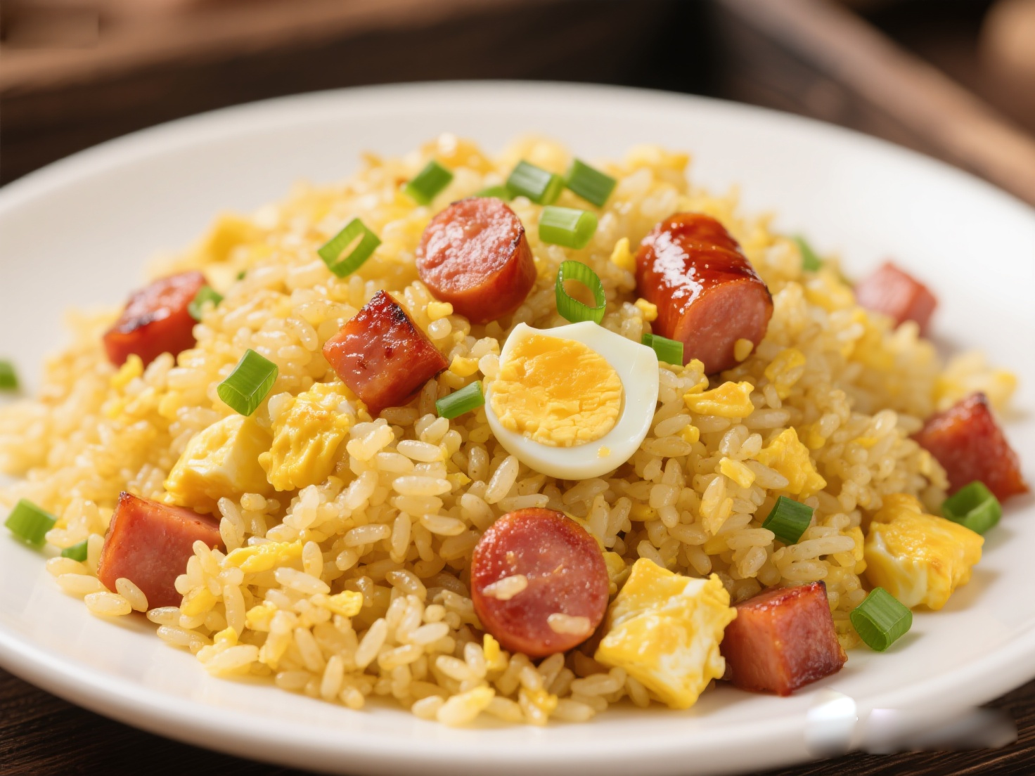 特點(diǎn):烤腸的甜咸汁水融入米飯,與蛋香、蔥香結(jié)合,是解決一餐的絕佳主食,營養(yǎng)豐富。